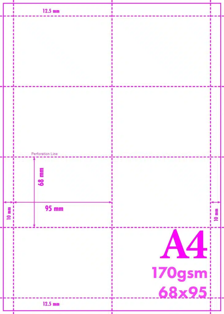 A4-170GSM/2/8L – 170GSM A4 MICRO PERFORATED CARD (Name Cards) – VARIOUS PACK SIZES