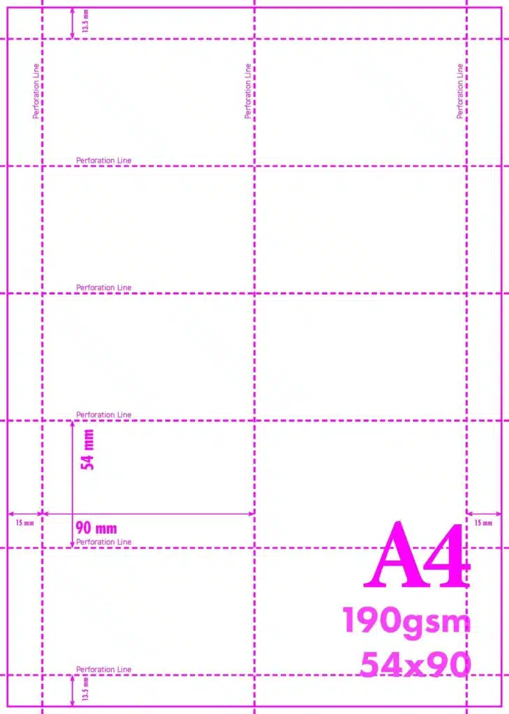 A4-150GSM/5/9 – 150GSM MICRO PERFORATED CARDS (9 per SHEET) – VARIOUS PACK SIZES