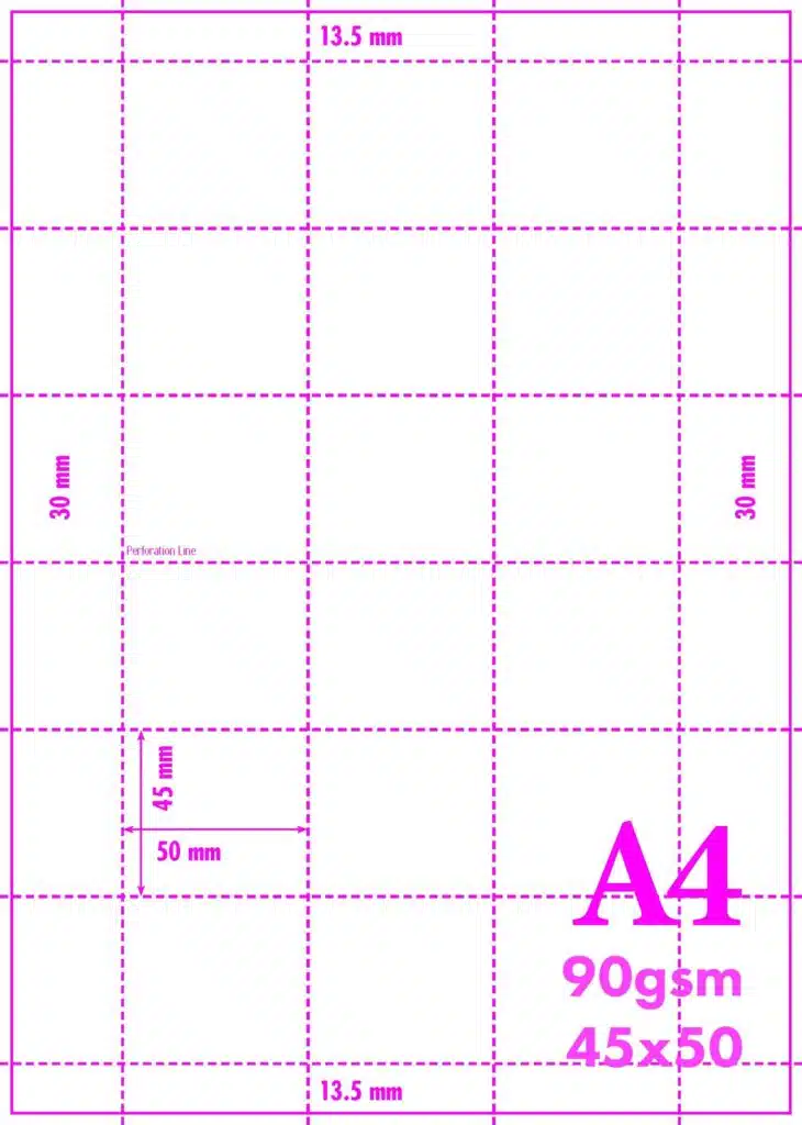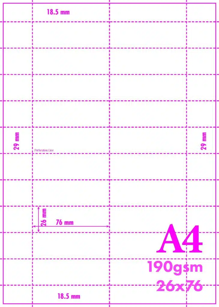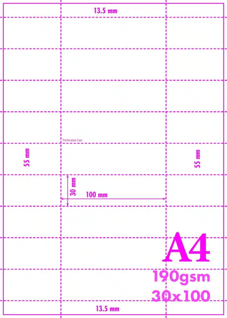 A4-150GSM/2/8s – 150GSM A4 MICRO PERFORATED CARD (Shelf Edge Labels) – VARIOUS PACK SIZES